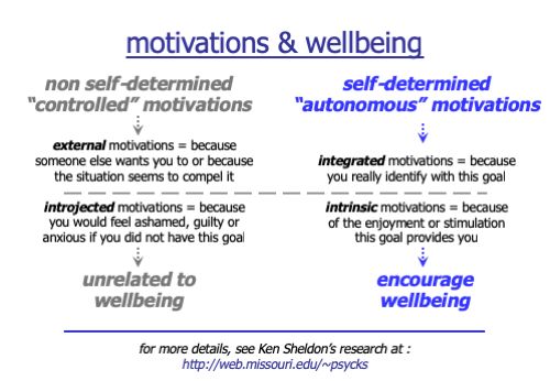 Often our motivations are a mixture of Autonomous & Controlled, but for important decisions it seems important to have the main weight of the motivation as Autonomous: