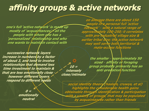 In this second part of three on Dunbar's 5-15-50-150 personal social network model, I talk about the 'outer layers' - the sympathy group, affinity group & full active network.